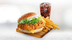 Cripsy chicken burger with drinks